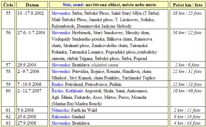 Na této stránce je uvedena 5. část údajů o absolvovaných cestách do zahraničí od roku 2002 do roku 2008...