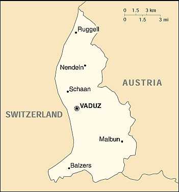 Malá země - cca 160 km2 - s asi 25.000 obyvateli, ležící mezi Rakouskem a Švýcarskem (měna - celní unie se Šv.); úřední jazyk je němčina.