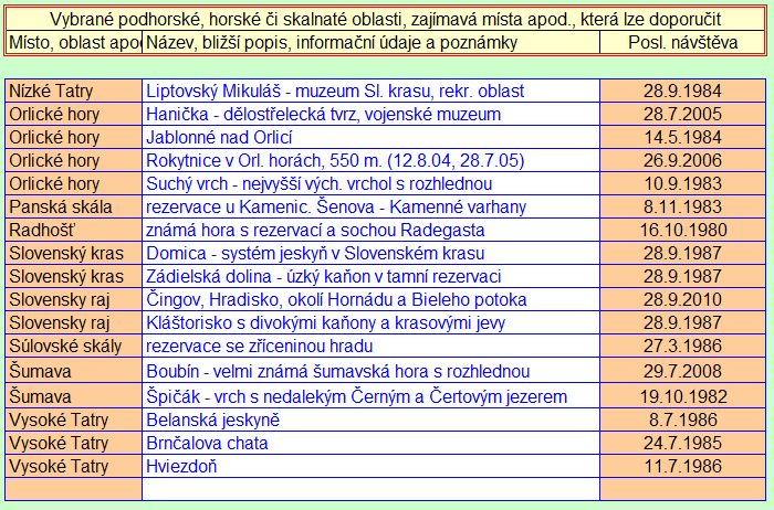 Dochované údaje s přehledem o datech vybraných návštěv v bývalém Československu, v České republice a ve Slovenské republice