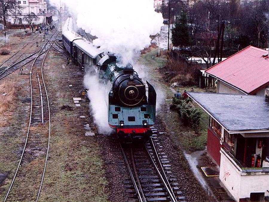Parní lokomotiva - známá "třistaosmdesátsedmička" - v akci...
